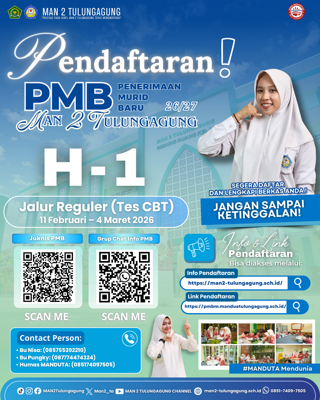Moderasi beragama, dalam Rencana Pembangunan Jangka Menengah Nasional (RPJMN) 2020-2024, adalah kebutuhan masyarakat Indonesia saat ini. Untuk itu, kita mendorong kepada semua stakeholder MAN 2 Tulungagung untuk memperkuat moderasi beragama ini tidak bersifat artifisial. Agar program moderasi beragama itu tepat, maka perlu dilakukan transformasi, dari formalisitik menjadi berorientasi kebutuhan masyarakat, dari pasif menjadi aktif-responsif, dari berjarak menjai di tengah-tengah masyarakat.