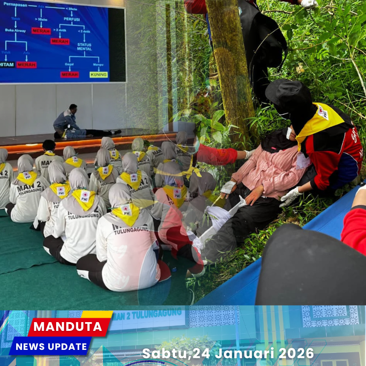 MANDUTA – MAN 2 Tulungagung sukses menyelenggarakan kegiatan Diklat Penempuhan Badge anggota PMR Wira Unit MAN 2 Tulungagung yang berlangsung selama dua hari, yakni pada Sabtu dan Minggu, 24-25 Januari 2026. Kegiatan yang diikuti oleh 62 peserta ini dipusatkan di dua lokasi utama, yaitu lingkungan madrasah dan Situs Goa Selomangleng. Penyelenggaraan diklat ini merupakan bagian dari pembinaan karakter dan keterampilan siswa MAN Tulungagung di bawah koordinasi Kemenag Tulungagung serta selaras dengan program pengembangan kesiswaan Kemenag Jawa Timur.
