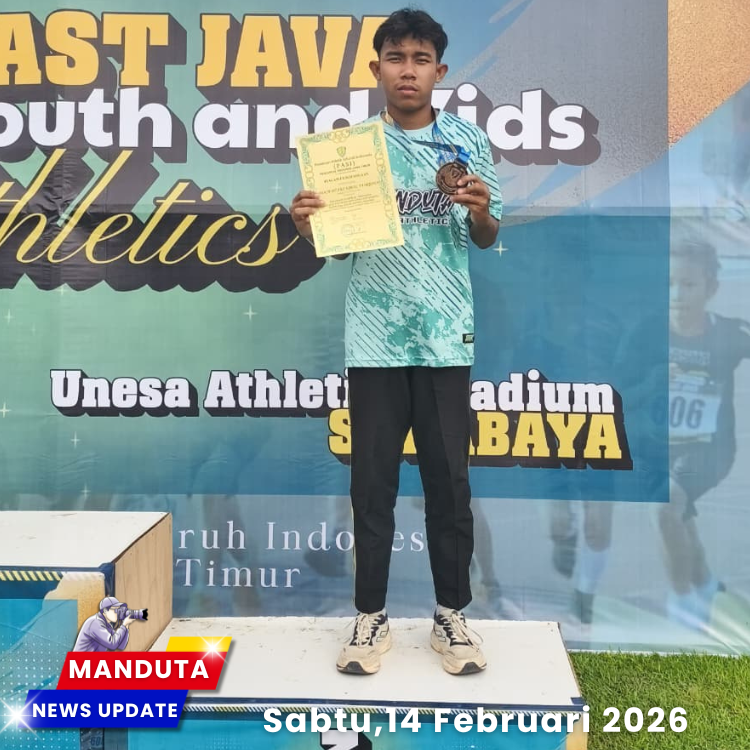 MANDUTA – MAN 2 Tulungagung kembali menorehkan prestasi membanggakan di kancah nasional. Moch. Dzaky Iqbal F, siswa kelas XI-10, berhasil meraih juara 3 lari 400 meter putra dalam ajang bergengsi “EAST JAVA YOUTH & KIDS ATHLETICS SESSION 1” yang diselenggarakan pada Minggu, 15 Februari 2026 di Lapangan Atletik “Oentoeng Poedjadi” FIK UNESA Surabaya. Capaian ini semakin mengukuhkan posisi MAN Tulungagung sebagai madrasah berprestasi di bawah binaan Kemenag Tulungagung dan Kemenag Jawa Timur.